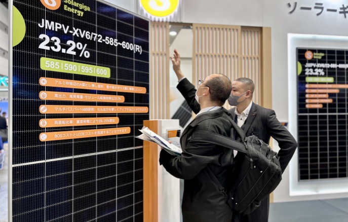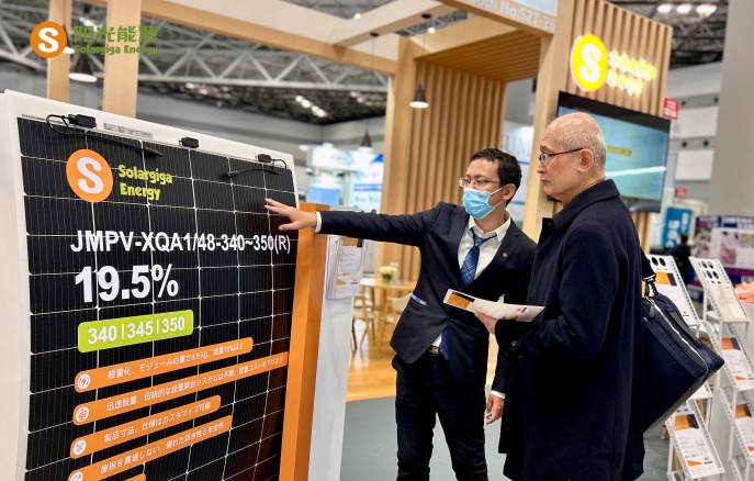 本次展會,陽光能源集中展示了公司的前沿技術(shù)和先進(jìn)的光伏組件產(chǎn)品,5 款展品高度契合以小型項目為主導(dǎo)的日本光伏市場需求。其中一款 Giga-N 系列 48 片輕質(zhì)雙玻戶用光伏組件,采用了 N型TOPCon 電池技術(shù)搭載 210R 矩形硅片,極大地提升了發(fā)電效率,組件轉(zhuǎn)換效率提升到 23.0% ,即便在弱光環(huán)境下也能高效運(yùn)作;在外觀設(shè)計方面,打造更加簡約時尚的全黑外觀,適用于各類建筑風(fēng)格。