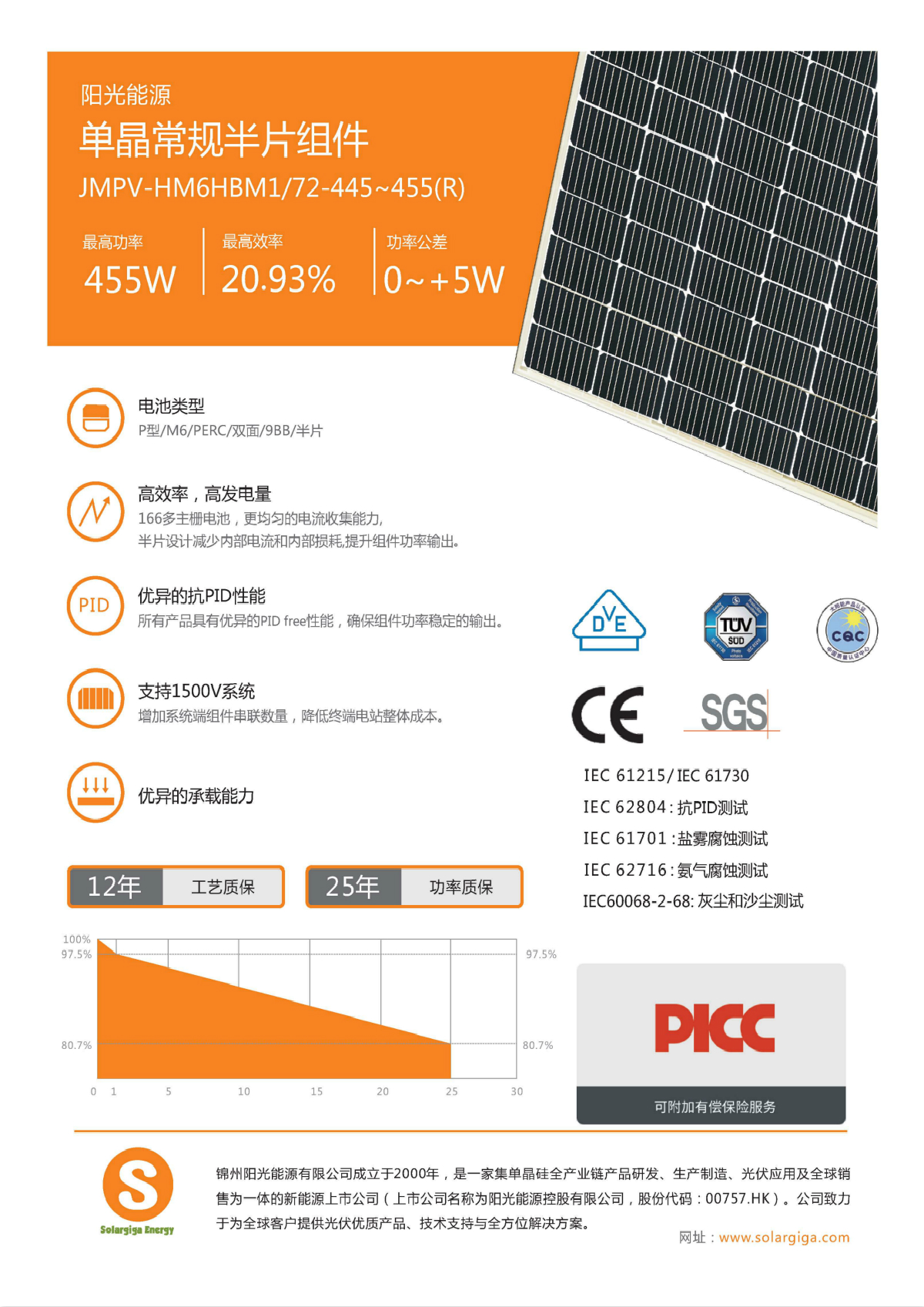 104項(xiàng)檢測(cè)項(xiàng)目,成品組件3~10倍于IEC標(biāo)準(zhǔn)環(huán)境測(cè)試要求。